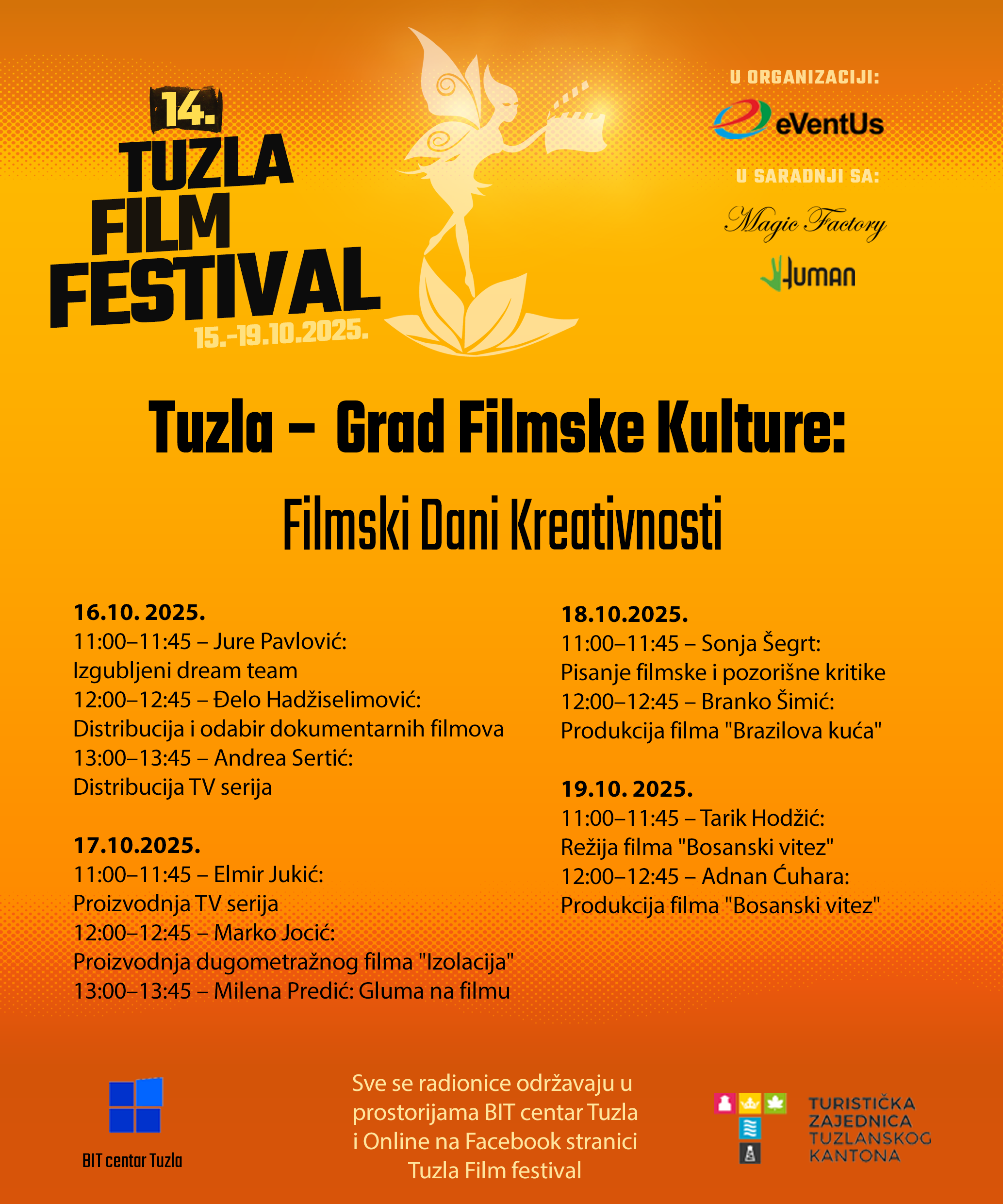 Organizatori festivala su Magic Factory u saradnji sa Eventus i Human. Sve informacije o programu dostupne su na www.tff.ba te društvenim mrežama Facebook @TuzlaFilmFestival i Instagram @TuzlaFilmFest.