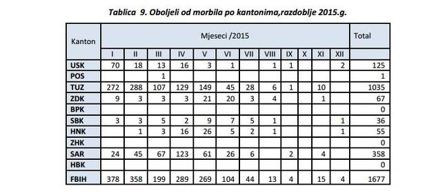 Od rubeole su u 2013. godini bolovale tri, 2014. godine pet, 2015. godine osam, a prošle godine 14 osoba.