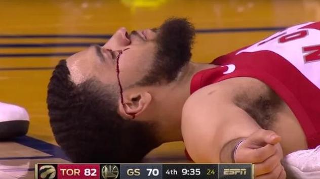 Nakon udarca, VanVleet se srušio na parket i ostao je tu ležati neko vrijeme, što je redatelj prijenosa iskoristio stavivši ga u puni fokus na kojem izgleda kao da mu curi krv iz oka.