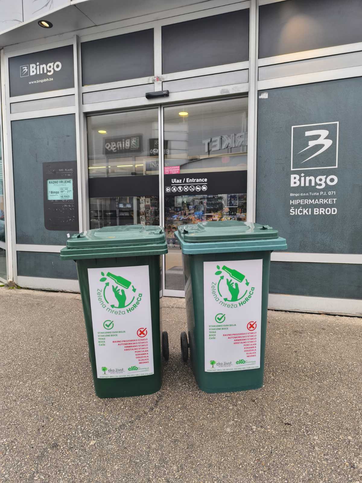 Realizacija projekta „Zelena mreža HoReCa“ u Gradu Tuzla je zvanično počela na terenu – krenuli smo s podjelom kanti za selektivno odvajanje staklene ambalaže, a među prvim objektima koji su se uključili u projekat je i Bingo, zajedno sa poslovnim jedinicama/restoranima u kojima će se staklena ambalaža od sada odvajati na mjestu nastanka.