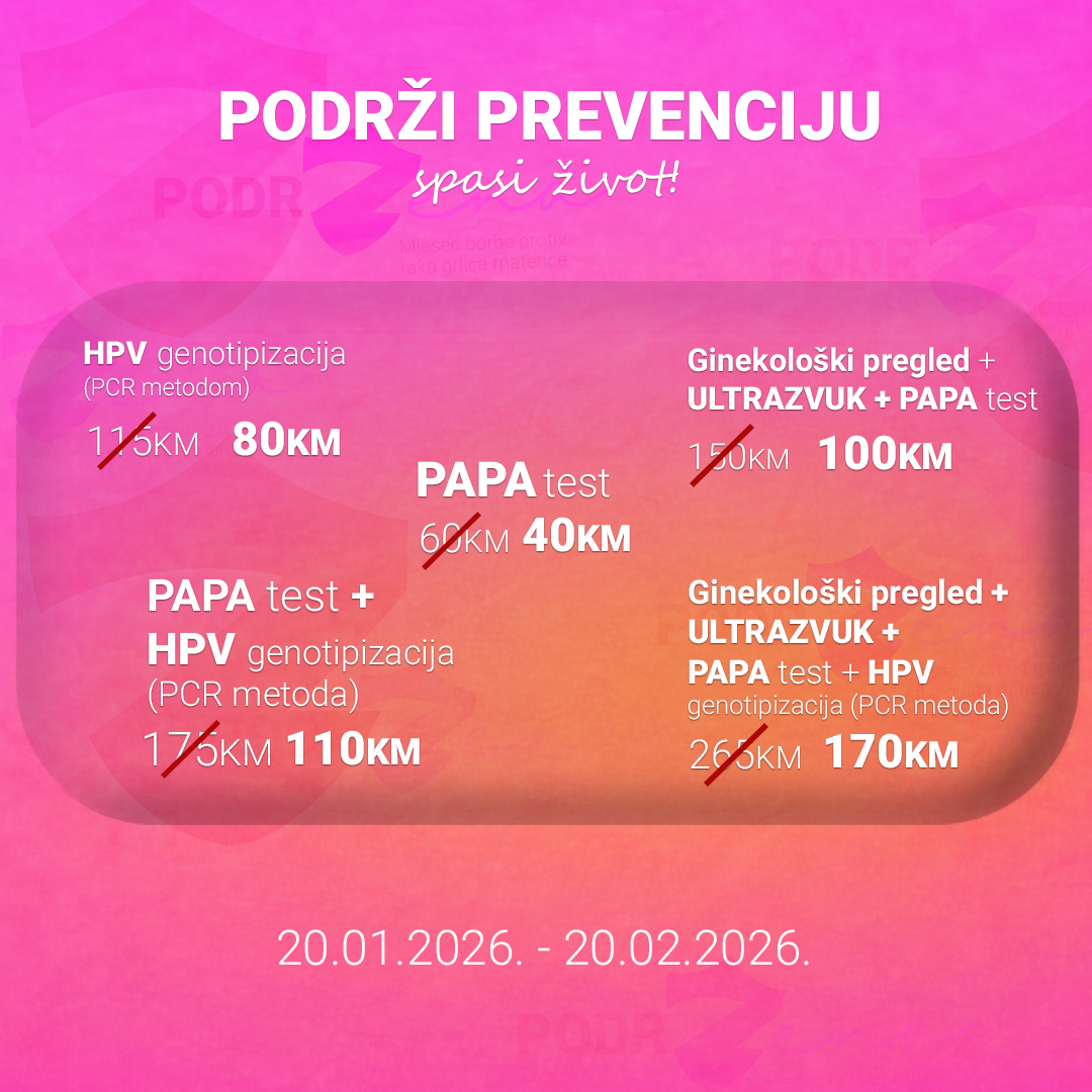 Kampanja počinje 20. januara 2026 godine i trajat će do 20. februara 2026 godine. Cilj je jasan, podsjetiti žene da zdravlje mora biti prioritet, bez odgađanja i straha. U okviru kampanje pacijentima su dostupni paketi po sniženim, povoljnim cijenama. Cijena PAPA-a testa iznosit će 40,00 KM, ginekološkog paketa (UZ, ginekološki pregled i PAPA test) 100,00 KM, HPV genotipizacije 80,00 KM te ginekološkog paketa, UZ, PAPA test-a i HPV genotipizacije (PCR metoda) biti 170,00 KM.
