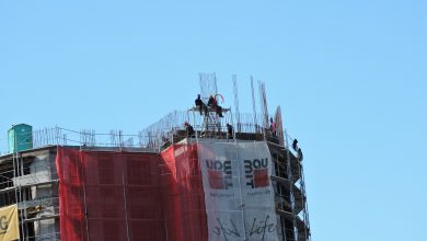 Lijep februarski dan, radnici na jednoj od najvećih zgrada u Tuzli koriste za izvođenje radova za 11. sprat zgrade na…