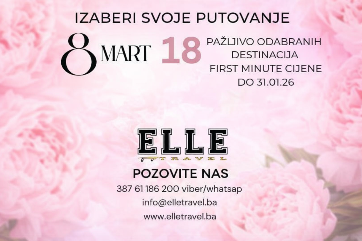 Povodom 8. marta – Dana žena, turistička agencija Elle Travel pripremila je bogatu ponudu putovanja namijenjenih onima koji žele ovaj datum obilježiti putovanjem, druženjem i predahom od svakodnevice.
