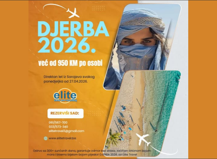 Elite Travel u svojoj ponudi nudi aranžmane već od 950 KM po osobi, uz direktne charter letove iz Sarajeva i boravak u hotelima sa 4 i 5 zvjezdica, uz all inclusive uslugu. Let do Djerbe traje oko dva sata, što ovu destinaciju čini savršenim izborom za brz i bezbrižan ljetni odmor.
