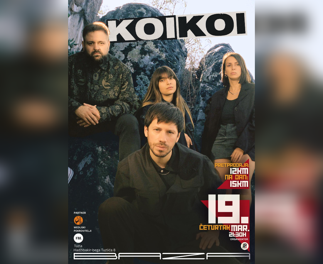 Grupa KOIKOI u četvrtak 19.3.2026.g. u klubu BAZA u Tuzli, u partnerstvu sa Udruženjem „Tuzla Live“, održati će svoj prvi nastup pred tuzlanskom publikom i promovisati svoj aktualni album „O sreći u snovima“.
