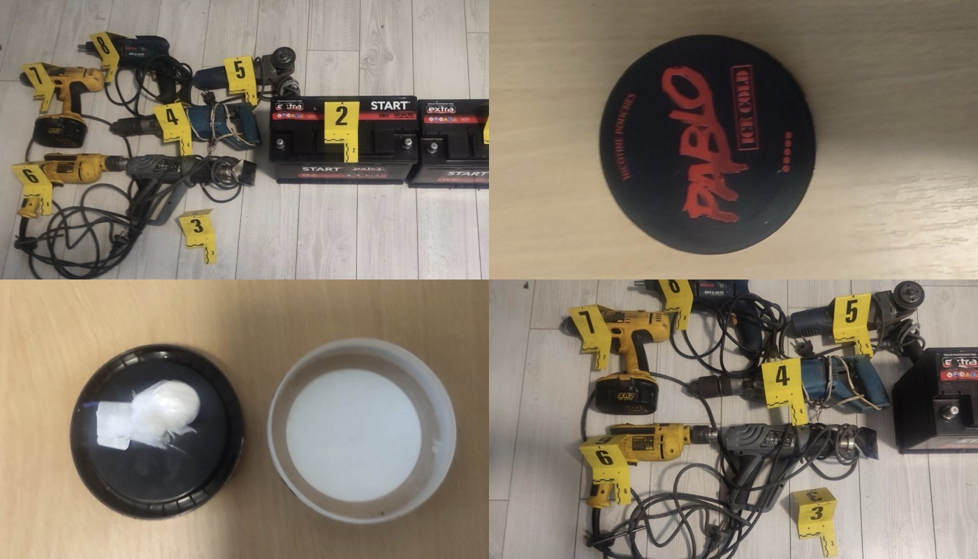 Pronađeni su predmeti koji potiču iz krivičnih djela počinjenih tokom oktobra na štetu dva pravna i jednog fizičkog lica, uključujući brusilice, bušilice, akumulatore, industrijski fen i pvc foliju sa sadržajem bijele materije koja asocira na drogu Speed.