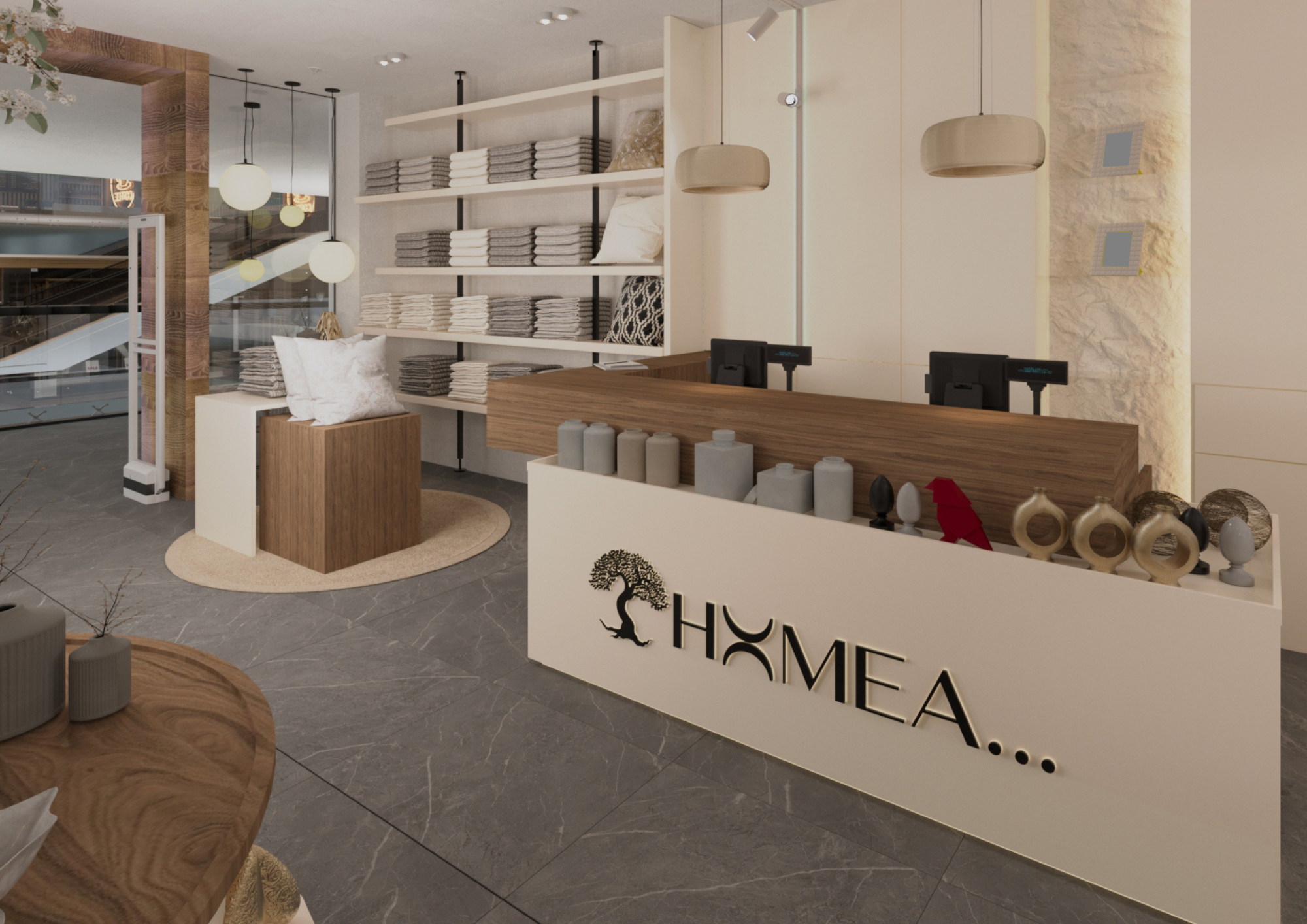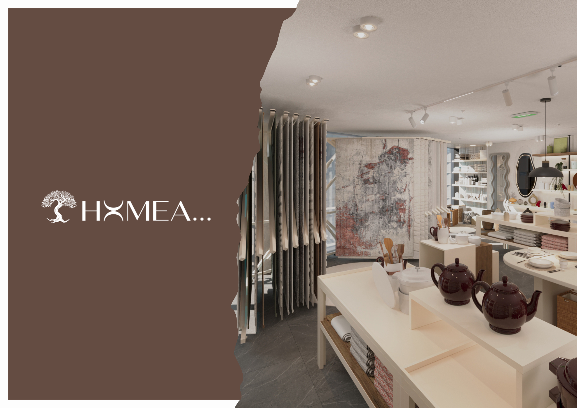 Koncept HOMEA prodavnica baziran je na spoju funkcionalnosti i estetike, gdje se nastoji ponuditi kvalitetan izbor artikala.