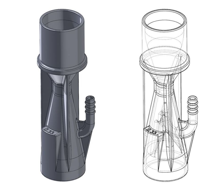 Za printanje ventila preporučuje se tehnologija SLS printanja sa materijalom PA12. Ukoliko je nekome poznato da neko u BiH posjeduje navedeni 3D printer – bilo bi dobro da se javi, kažu iz CGP tima. Inžinjeri sa Mašinskog fakulteta, nažalost, ne posjeduju ovaj uređaj (uređaj košta oko 500.000 KM), međutim posjeduju SLA i FDM tehnologije koje nisu preporučljive zbog poroznosti proizvednih ventila i problematike oko njihove dezinfekcije, ali se mogu koristiti ukoliko ništa drugo nije dostupno. Pozivaju se i svi ostali da pomognu u razvoju ovog ventila, najvažnije karakteristike su da bude proizveden od materijala koji se može dezinficirati i da bude proizveden sa što većom tačnošću, unutar ventila se nalazi cijevčica sa 0,8 milimetarskog promjera. CGP design tim je već izradio nekoliko prototipa na FDM 3D printerima od PLA i CPE+ materijala, što se vidi na slici ispod.