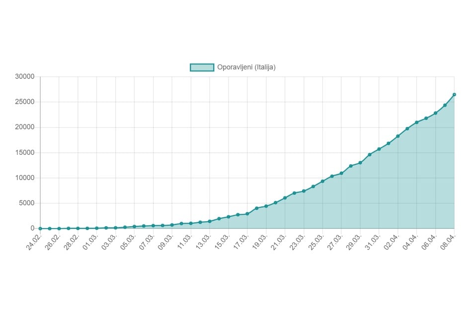 Prema podacima Civilne zaštite Italije, u posljednja 24 sata preminulo je 542 ljudi što predstavlja pad u odnosu na utorak kada su umrle 604 osobe, a oporavilo se 2.099.