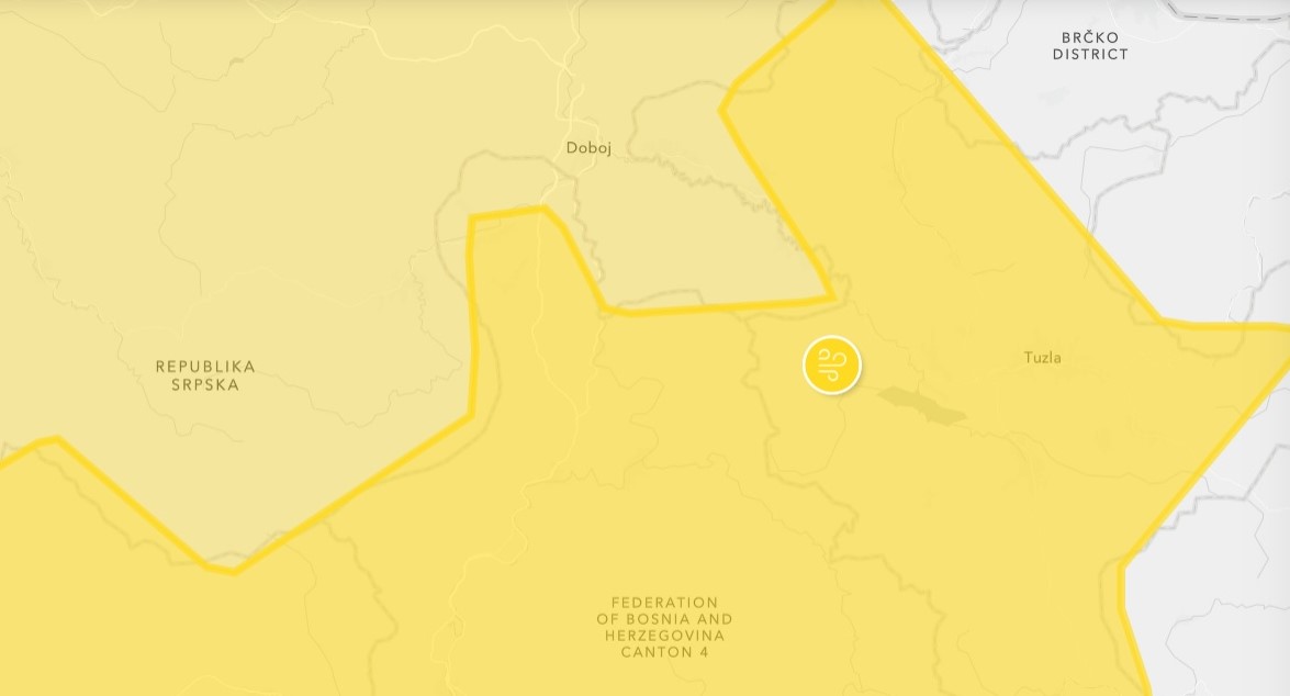 Za područje Tuzle izdato je žuto upozorenje zbog udara vjetra brzine od 40 km/h i više, koje traje od 1. oktobra u 22:00 do 2. oktobra u 21:59, a potom se produžava do 3. oktobra u 21:59. Vjetar može uzrokovati probleme na otvorenom, te se preporučuje dodatna opreznost.