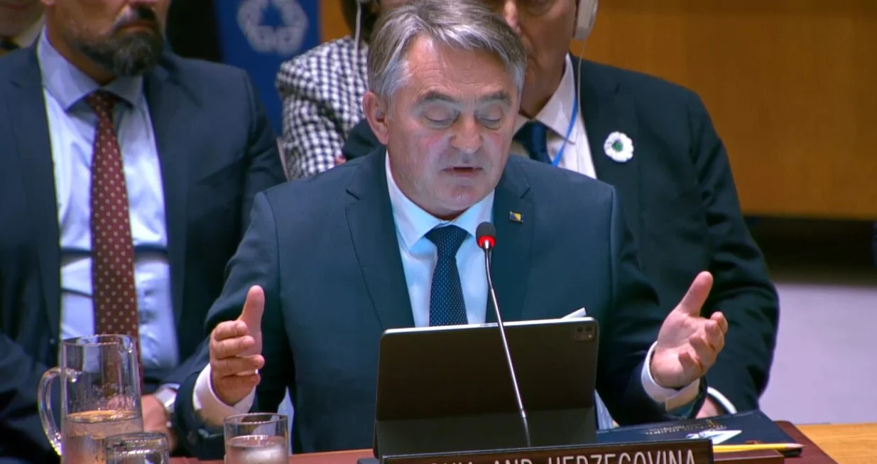 Predsjedavajući Predsjedništva BiH Željko Komšić obratio se na sjednici Vijeća sigurnosti UN-a posvećenoj Bosni i Hercegovini, naglašavajući potrebu očuvanja Ureda visokog predstavnika (OHR) i njegovih punih ovlasti. Komšić je izrazio zahvalnost članicama Vijeća sigurnosti na odluci o produženju mandata misiji EUFOR “Althea”, ističući značaj međunarodne podrške za stabilnost BiH.