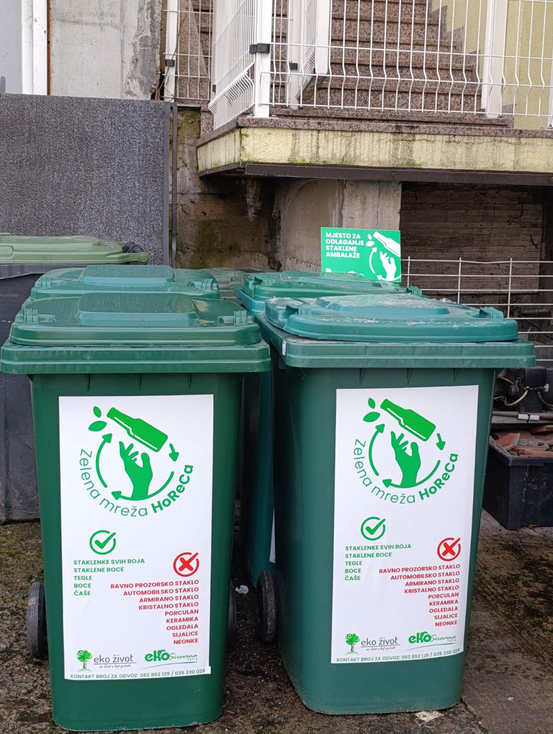 U okviru aktivnosti na terenu, u objektu su postavljene namjenske posude za odvajanje stakla, čime je uspostavljen sistem koji doprinosi smanjenju količine otpada na deponijama i jačanju procesa reciklaže. Nosilac projekta „Zelena mreža HoReCa“ je Eko život, dok preuzimanje i transport staklene ambalaže po principu „od objekta do objekta“ realizuje Eko Sirovina d.o.o. Tuzla, nakon čega se prikupljeno staklo upućuje na daljnju preradu.