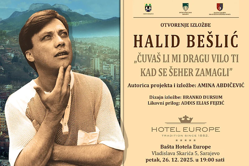 Multimedijalna izložba o Halidu Bešliću bit će otvorena u bašti hotela Europe u Sarajevu 26. decembra u 19 sati.