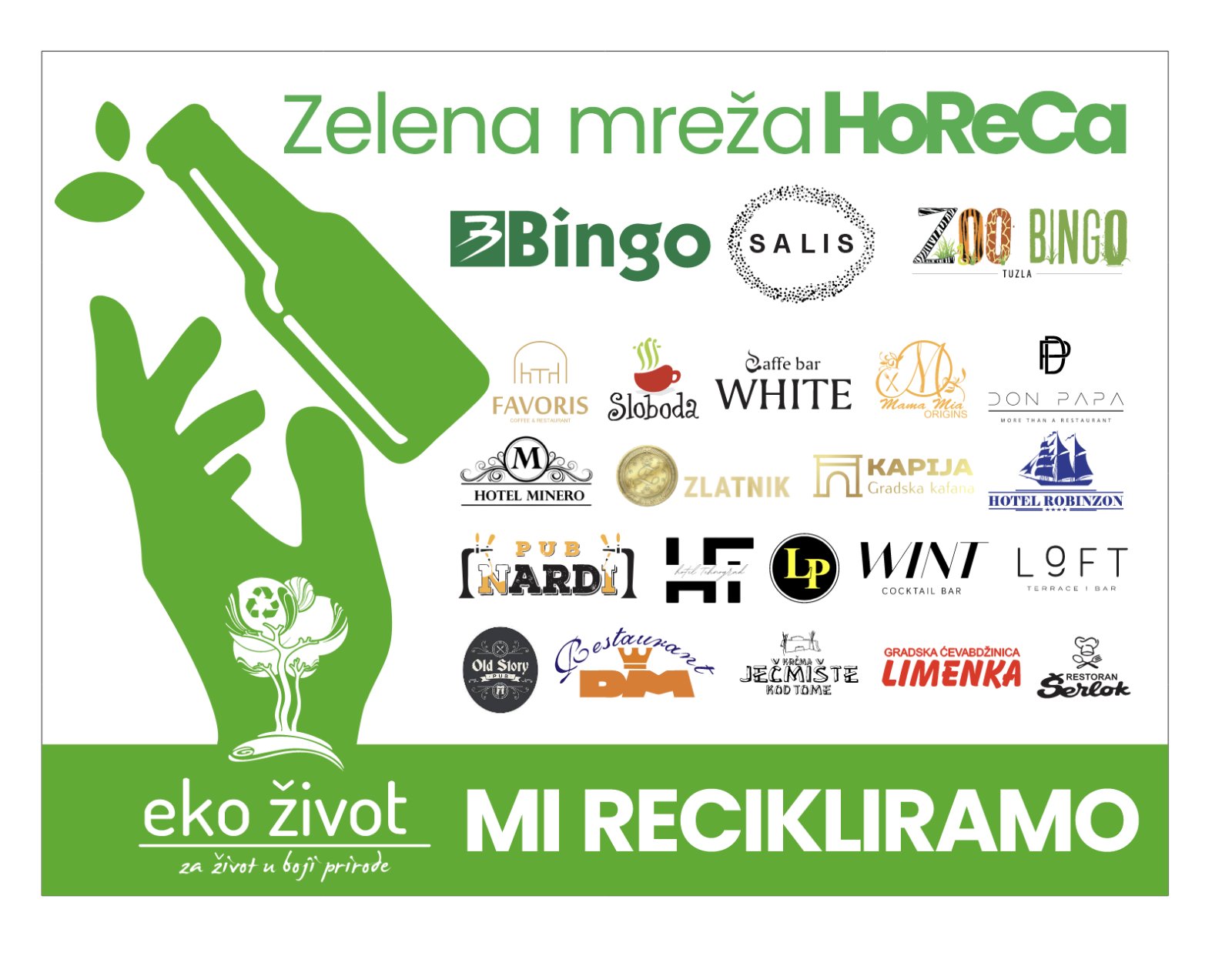 Ako imate hotel,restoran, kafić ili drugi ugostiteljski objekat na području Tuzle i želite da se uključite u projekat Zelena mreža HoReCa i budete društveno odgovorni, javite se timu Eko života i postanite dio inicijative koja mijenja navike – i čuva grad.