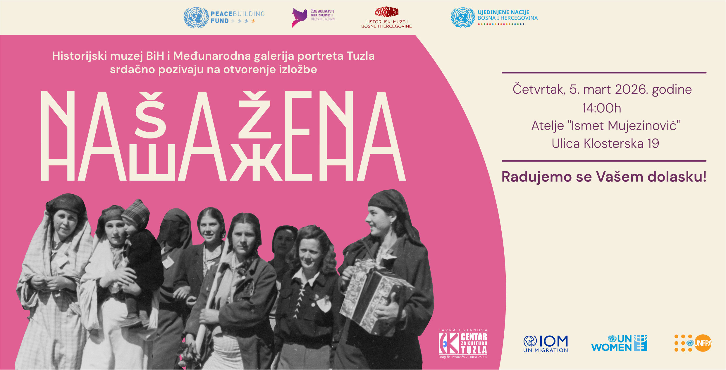 Historijski muzej Bosne i Hercegovine i Međunarodna galerija portreta Tuzla povodom 8. marta organizuju gostovanje izložbe „Naša žena“, koja će biti otvorena 5. marta u Ateljeu „Ismet Mujezinović“ u Tuzli.