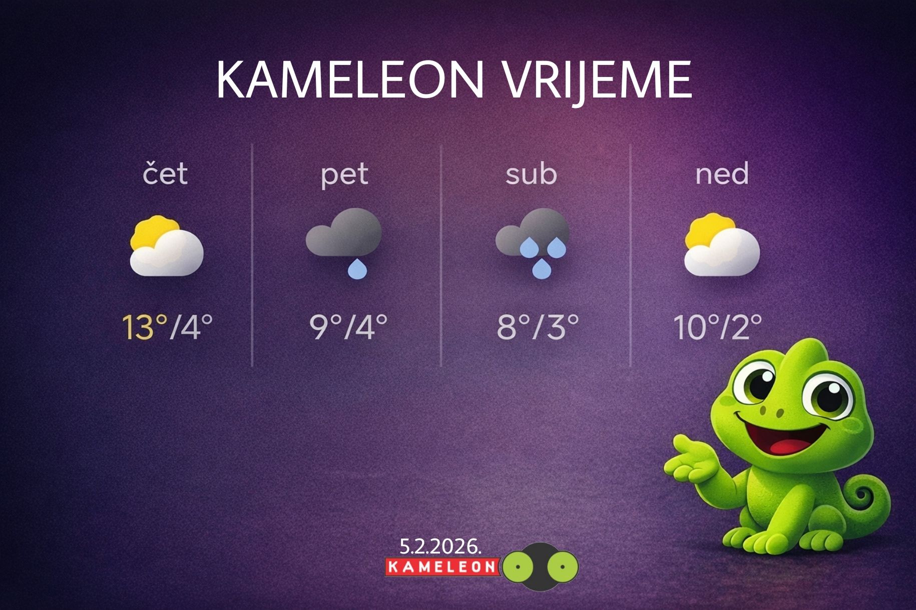 Danas u Bosni i Hercegovini preovladavat će pretežno oblačno vrijeme, većinom uz slabu kišu. Na višim planinskim vrhovima povremeno je moguć i slab snijeg.