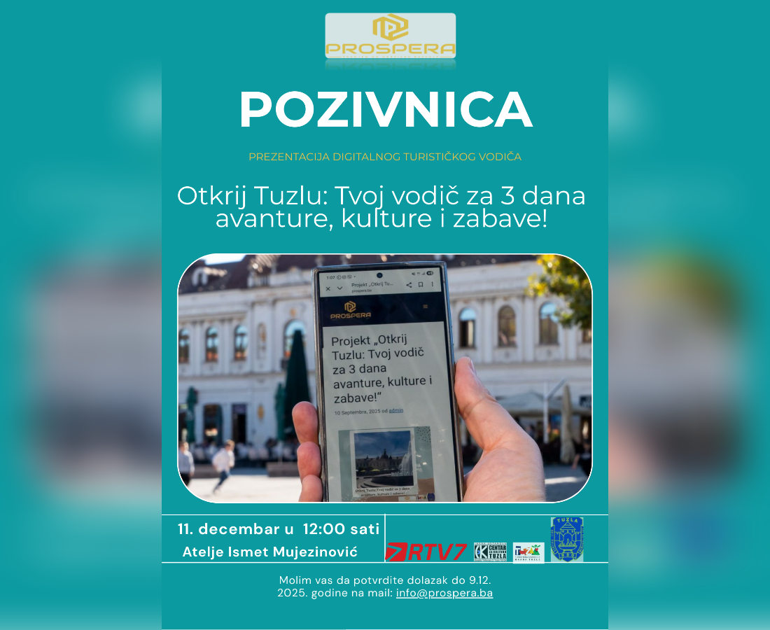 U četvrtak, 11. decembra 2025. godine, u Ateljeu „Ismet Mujezinović“ u Tuzli biće predstavljen novi digitalni turistički vodič pod nazivom „Otkrij Tuzlu: Tvoj vodič za 3 dana avanture, kulture i zabave“.