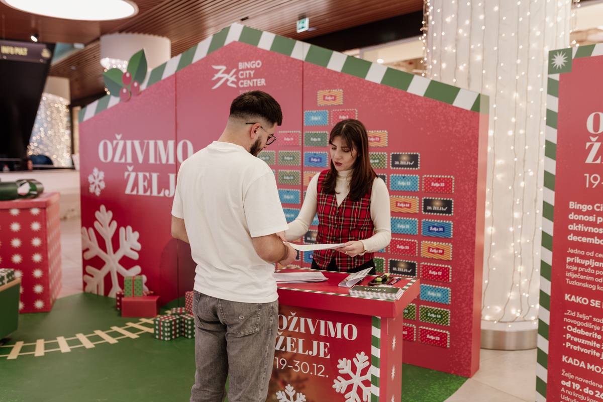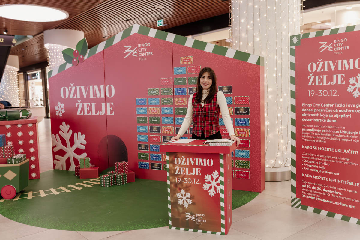 Od 19. do 26. decembra, posjetioci Centra mogu biti dio tradicionalne humanitarne akcije „Oživimo želje“, čiji je cilj ispuniti novogodišnje snove 77 mališana iz Udruženja Pipol iz Tuzle.