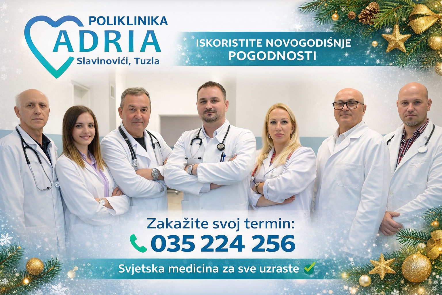 Povodom novogodišnjih praznika, Poliklinika ADRIA Tuzla pripremila je posebne zdravstvene pogodnosti namijenjene svim uzrastima stanovništva, s ciljem da kvalitetna zdravstvena zaštita bude dostupna svima.