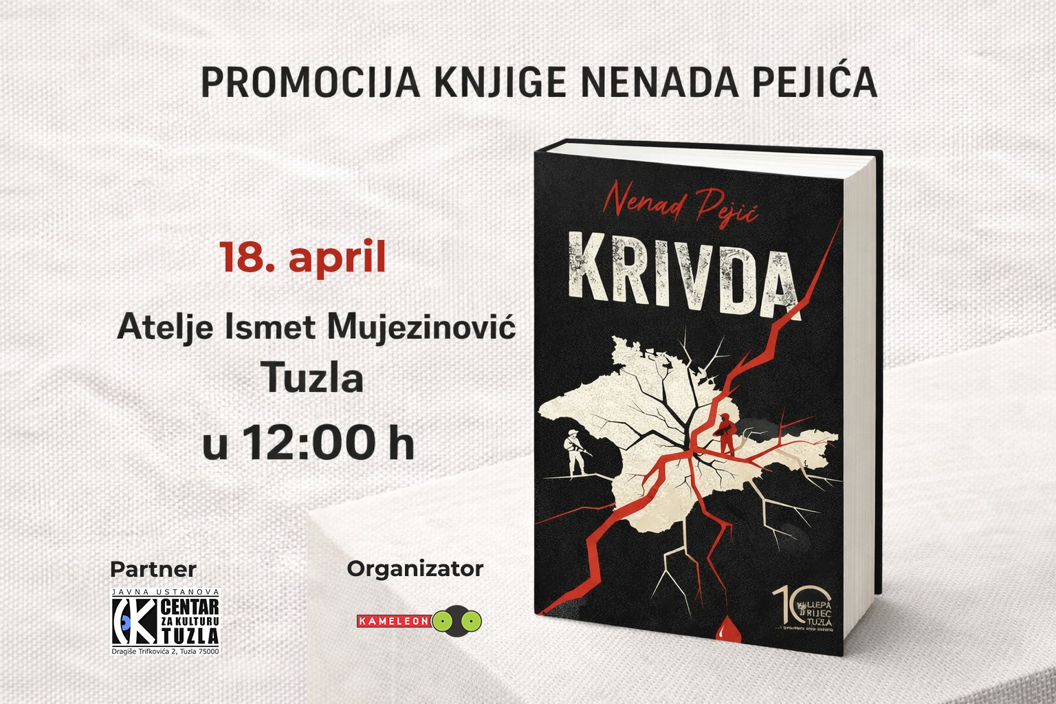 Tuzla će 18. aprila biti domaćin promocije novog romana „Krivda“ autora Nenada Pejića, koja će biti održana u Ateljeu Ismet Mujezinović s početkom u 12 sati.