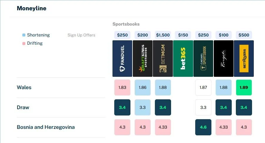 Koeficijenti na pobjedu Velsa kreću se između 1,83 i 1,89, dok se remi nakon 90 minuta procjenjuje kvotama od 3,3 do 3,4. S druge strane, eventualna pobjeda Zmajeva donosi znatno veće kvote, koje se kreću od 4,3 do 4,6.