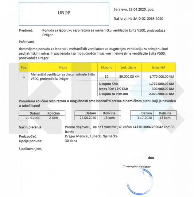 Na osnovu ovog podatka možemo zaključiti da, uz uračunat PDV, kupovina 100 vrhunskih respiratora ne bi prelazila 7 miliona KM, što je drastično manje od 10,5 miliona KM koje je za kupovinu sumnjivih kineskih respiratora platila Federalna uprava civilne zaštite.