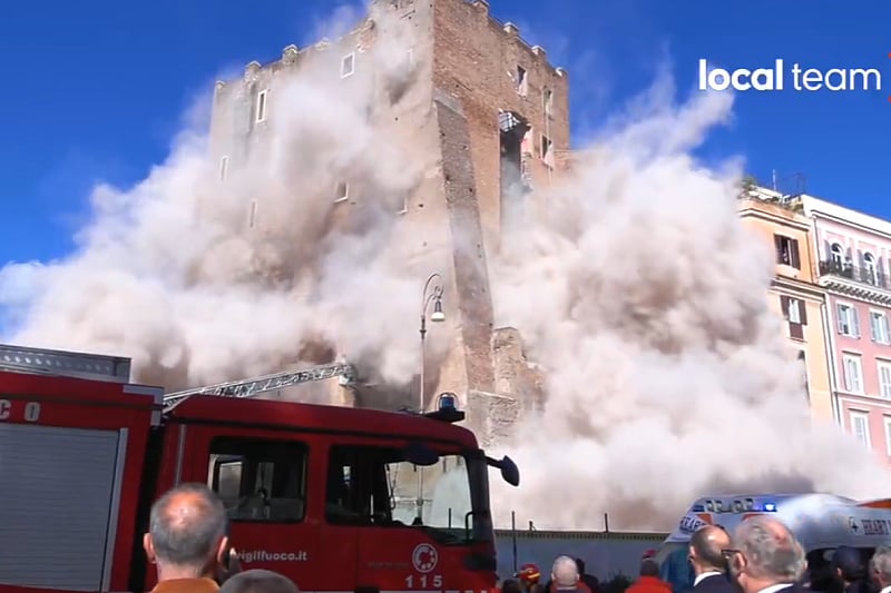 Strah i haos zavladali su danas u centru Rima, u blizini Foruma, nakon što se oko 11:20 sati djelimično srušio toranj Torre dei Conti, historijska građevina koja je bila u fazi obnove.