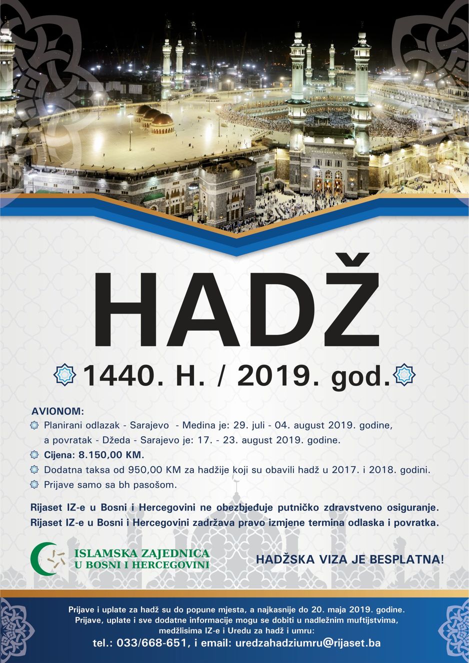 Okvirni rok za odlazak iz Sarajeva do Medine planiran je od 29. jula do 4. augusta 2019. godine, a okvirni povratak iz Džede za Sarajevo od 17. do 23. augusta 2019. godine.
