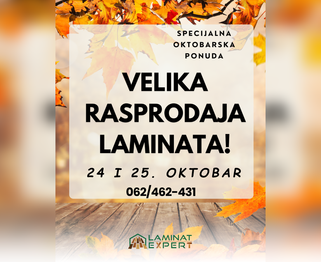 Ove sedmice, tačnije u petak i subotu, 24. i 25. oktobra, očekuje vas velika rasprodaja na cijeli asortiman laminata uz popuste do 30%!