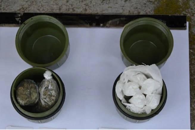 Tokom uviđaja pronađena je i oduzeta plastična tegla sa 23 paketića marihuane ukupne težine 174,3 grama, zatim dodatni paket marihuane težine 218,3 grama, kao i dvije plastične kutije u kojima su se nalazila tri paketića marihuane težine 98,5 grama i 11 paketića amfetamina ukupne težine 136,9 grama.