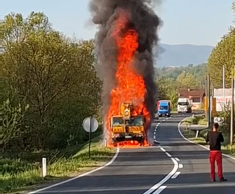 Na magistralnom putu Tuzla – Orašje, u mjestu Dobrinja, danas je došlo do zapaljenja kamiona-dizalice, zbog čega je saobraćaj u potpunosti obustavljen.